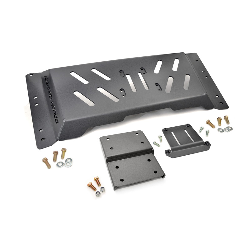 Put the shovel to rest with Rough Country's new High Clearance Skid Plate. Made from heavy-duty quarter inch steel, this super tough belly pan protects the underside of your vehicle from off-road hazards. With its innovative design the skid plate sits snug to the vehicle, avoiding hang-ups your factory plate can't and allowing an additional 2in of clearance. The pronounced lip traverses rocks and dirt with ease. A powdercoat helps ward off the elements as well as it gives the vehicle a killer look.