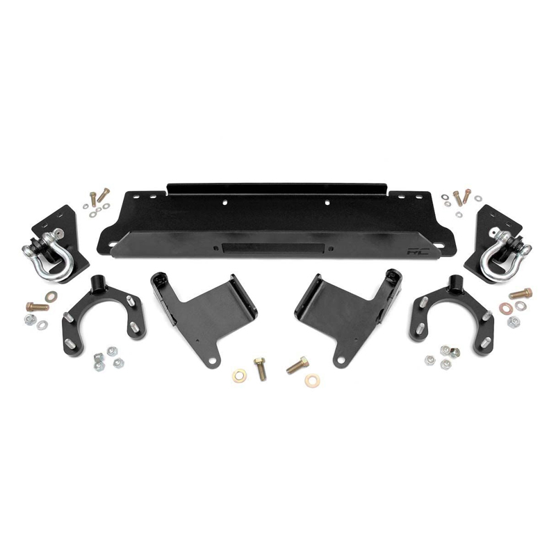 Rough Country's Winch Mounting Plate brings the power of recovery to your factory bumper! Take to the trails with peace of mind knowing you can easily recover your vehicle or help others when the time arrives. This innovative mounting system is designed to work with your factory JK bumper and can accommodate all standard-sized winches! The durable 1/4in steel plate mounts directly to the frame and is poweder coated black for a long life of good looks. The easy bolt-on installation procedure allows you to add this upgrade in a flash.