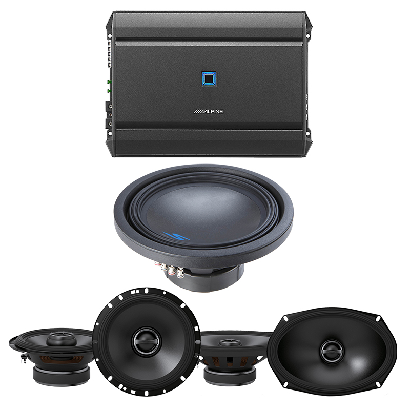 Alpine S-A55V + Alpine S-S65 + Alpine S-S69 + Alpine S-W12D2 Exclusive Amplifier Bundle