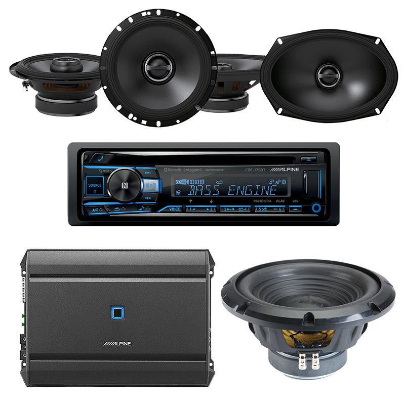 Alpine S-A55V + Alpine CDE-175BT + Alpine S-S69 + Alpine S-S65 + Alpine W10S4 Exclusive Bundle