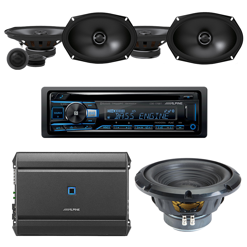 Alpine S-A55V + Alpine CDE-175BT + Alpine S-S69C + Alpine S-S69 + Alpine W10S4 Exclusive Bundle