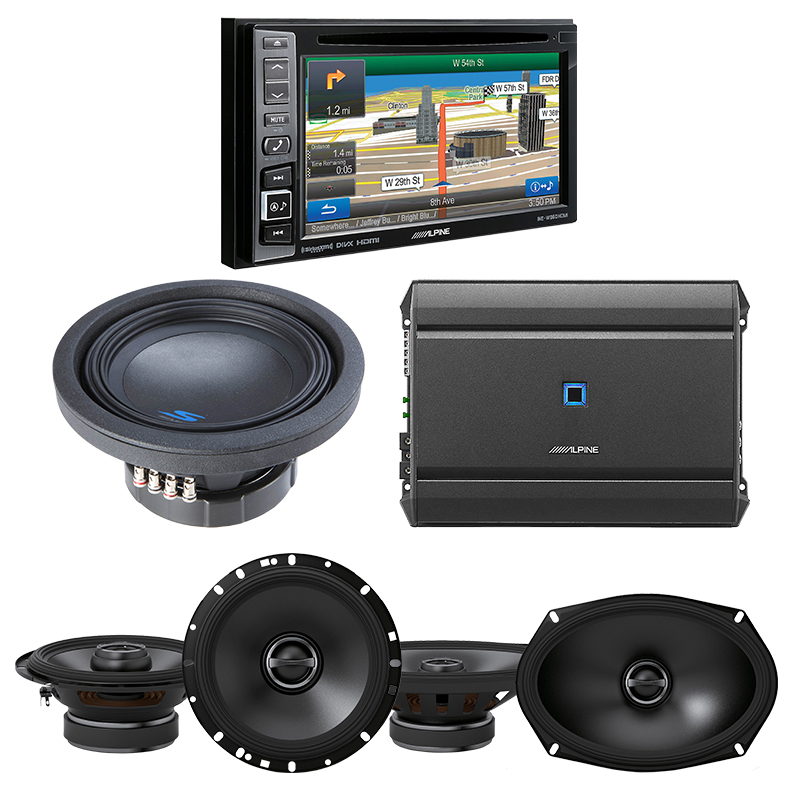 Alpine INE-W960HDMI + Alpine S-A55V + Alpine S-S65 + Alpine S-S69 + Alpine S-W8D4 Exclusive Bundle