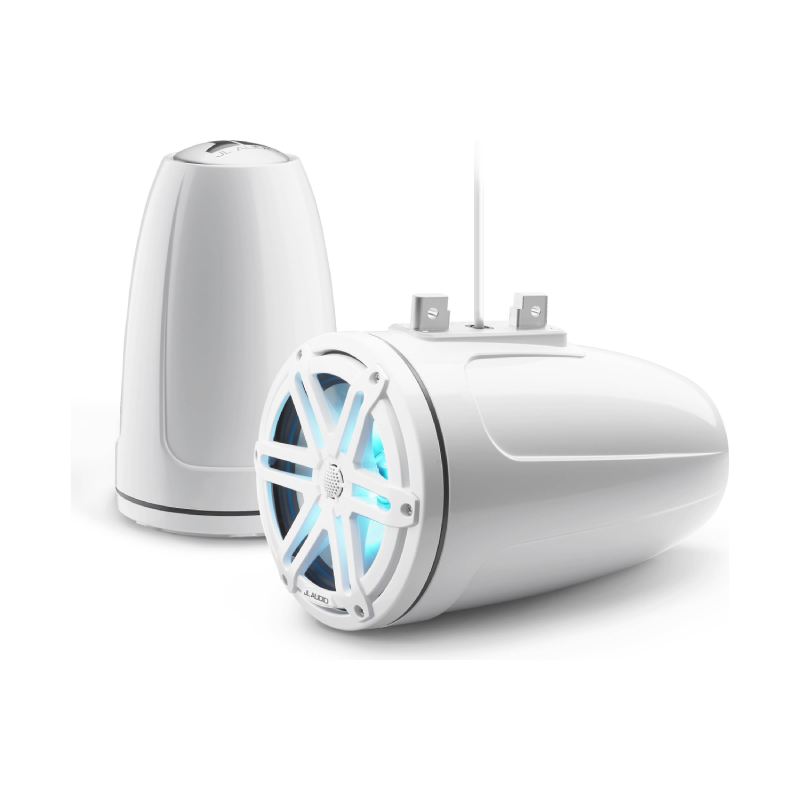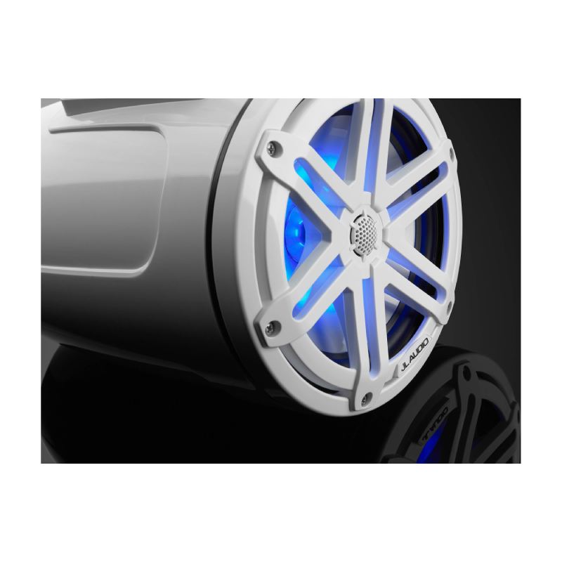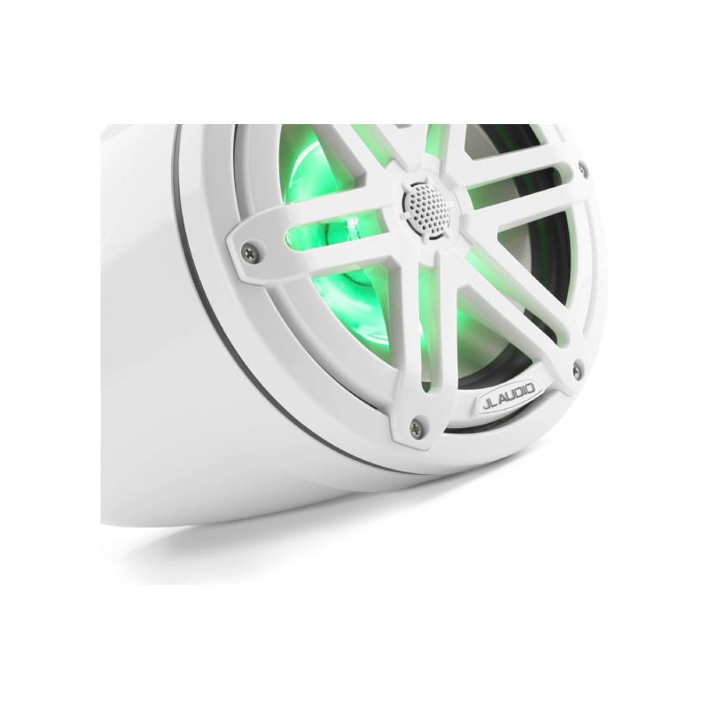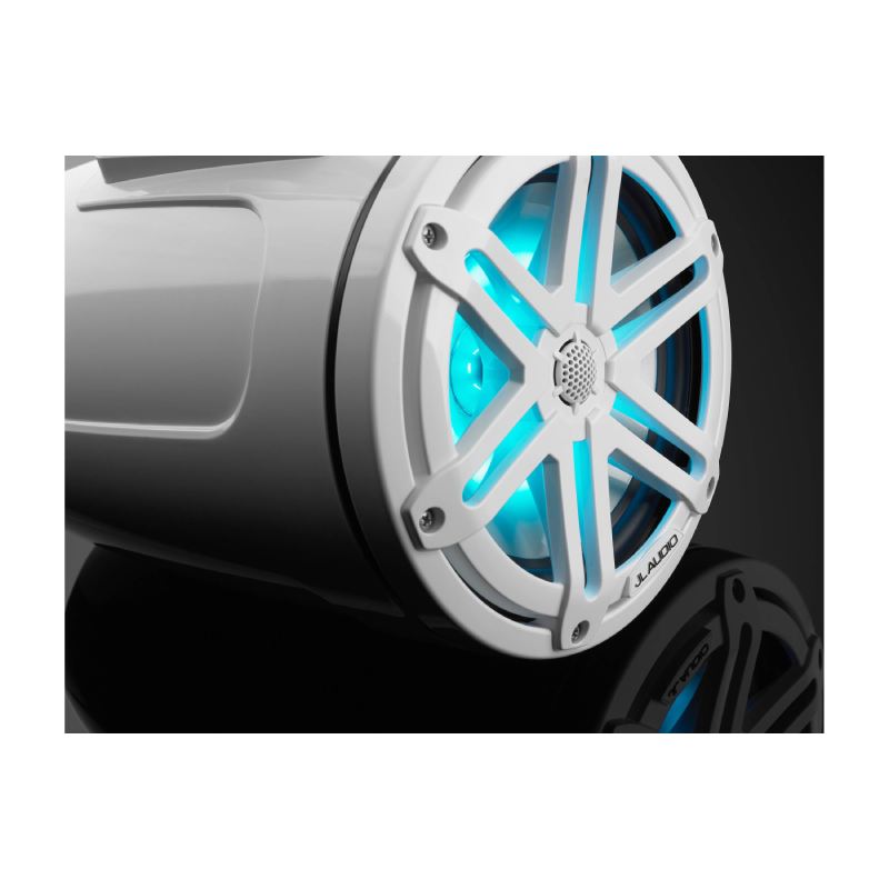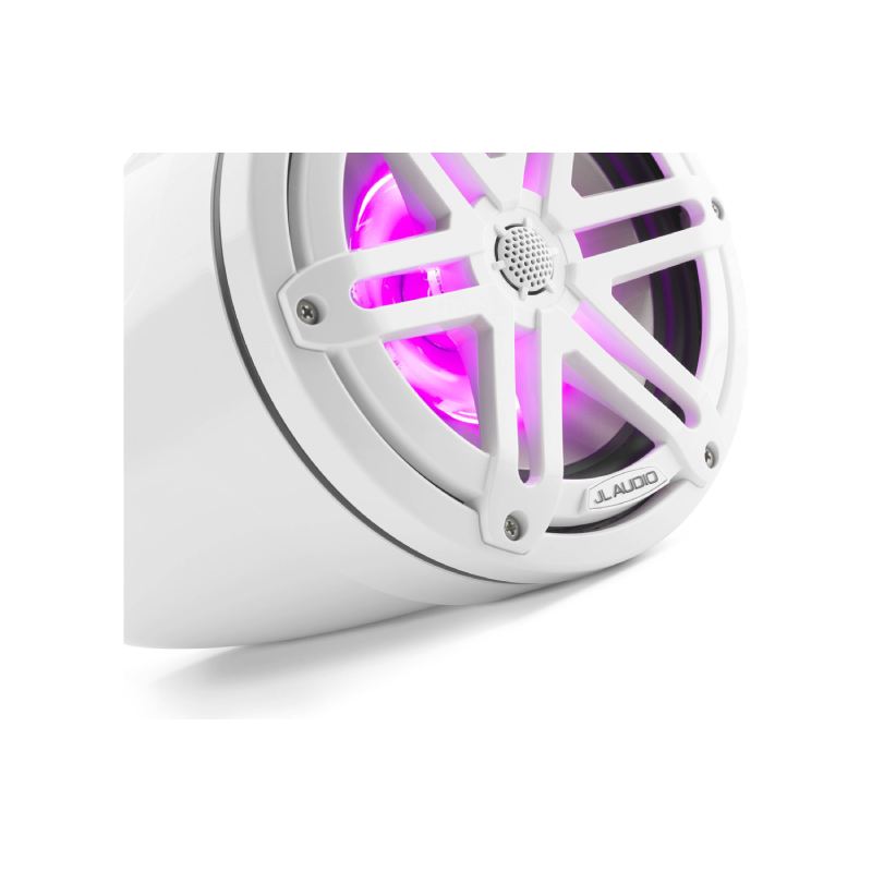 JL Audio M3-770ETXv3-Gw-S-Gw-i M3 Series 7.7" 70W RMS (225W Peak Power Handling) 4 Ohms, 2-Way Marine Tower Speakers, Gloss White with LED Lights and Gloss White Sport Grille (Pair)
