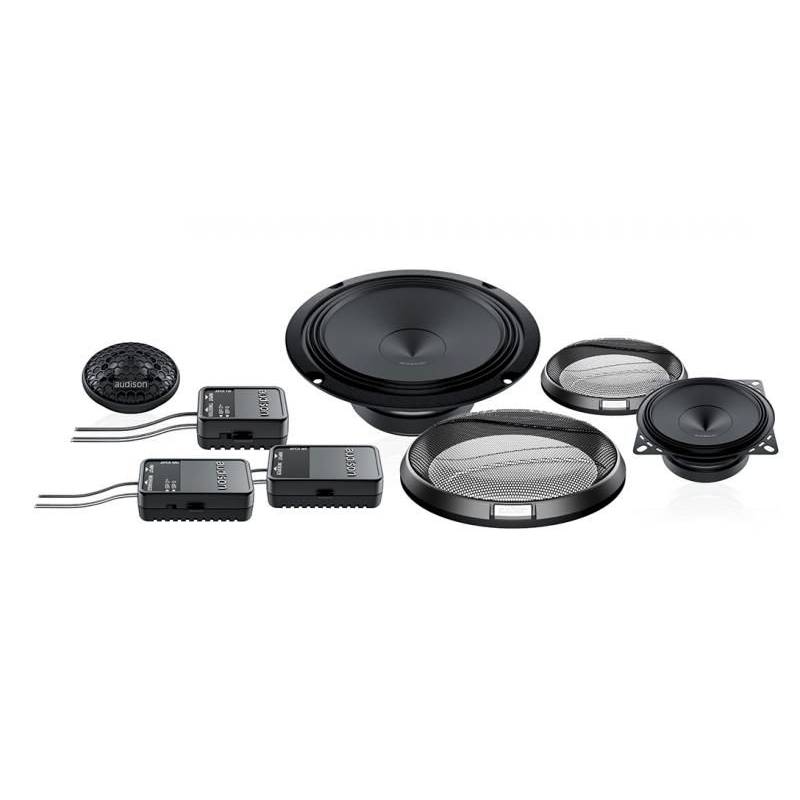 Three way system features AP 1 tweeter, AP 4 mid-bass and AP 6.5 woofer. APK 163 system deserves special attention; the Audison designers developed a separate crossover dedicated to each speaker, simplifying OEM speaker replacement operation, negating the routing of additional cables through the door, which could void the car warranty. To ease the installation in OEM placements the woofers are equipped with high current fast-on terminals with double contact on positive and negative poles for high flexibility and quick connection.
