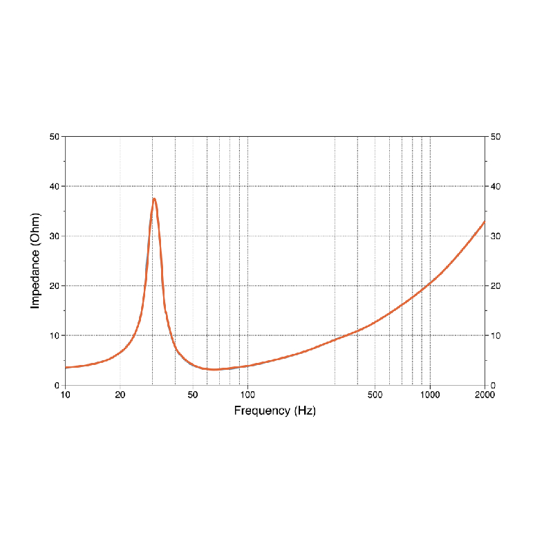 - 35 mm 2 Ω voice coil wound on six layers of pure copper on a high thermal resistance glass fiber support.