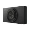 The TS-A3000LB features a single 12” driver made with a glass fiber and a mica interlaced, injection molded polypropylene (IMPP) cone with butyl rubber surround, mounted in a shallow sealed enclosure. The subwoofer’s voice coil suspension system is engineered to give balanced and linear motion of the cone, maintaining a high level of performance, response, and linearity, for superior sound.