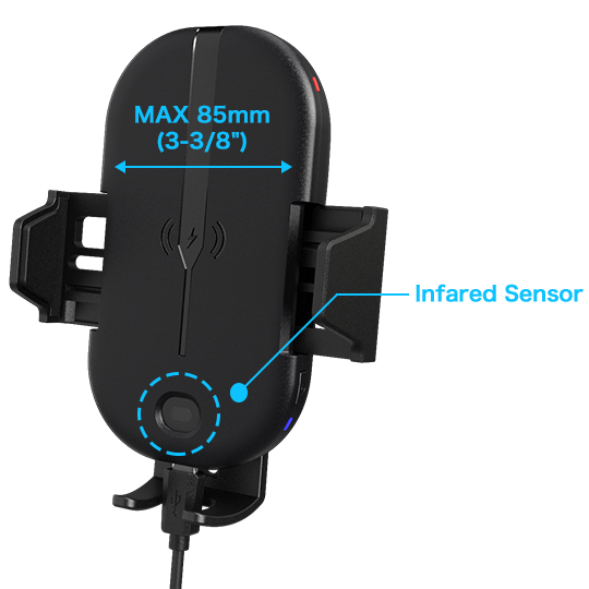 When the phone is placed near the infrared sensor, the clamping arms will automatically motorize open, allowing you to easily set the phone into the mount. After the phone has been placed into the mount, the clamping arms will automatically motorize closed to lock and hold the phone firmly in place.
