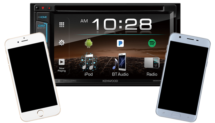 Connect your iPhone or Android device to access and control the most popular music application sources. Simply install the Spotify, Pandora, and/or iHeartAuto apps on your device, then connect iPhone (USB or Bluetooth) or Android (Bluetooth only) to enjoy music playback.
