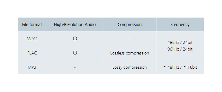 Compatible with a broad range of audio file formats from high-resolution audio sources such as FLAC and WAV, to MP3, WMA and AAC.