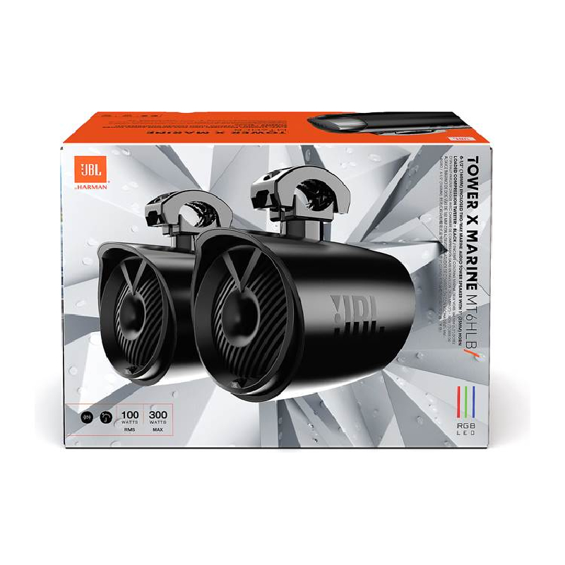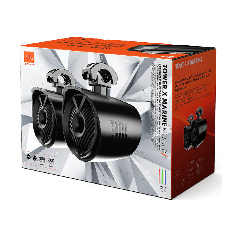 At JBL, we take pride in our iconic design heritage. Our design team took great care to ensure that your JBL Tower X Marine Speakers will look great on your boat. The smooth curve of the enclosure body, angular grille face design with embedded JBL horn logo, and “jet engine” component at the rear of the enclosure all tie together with our classic, current and future design language while concentrating on the design of your boat.