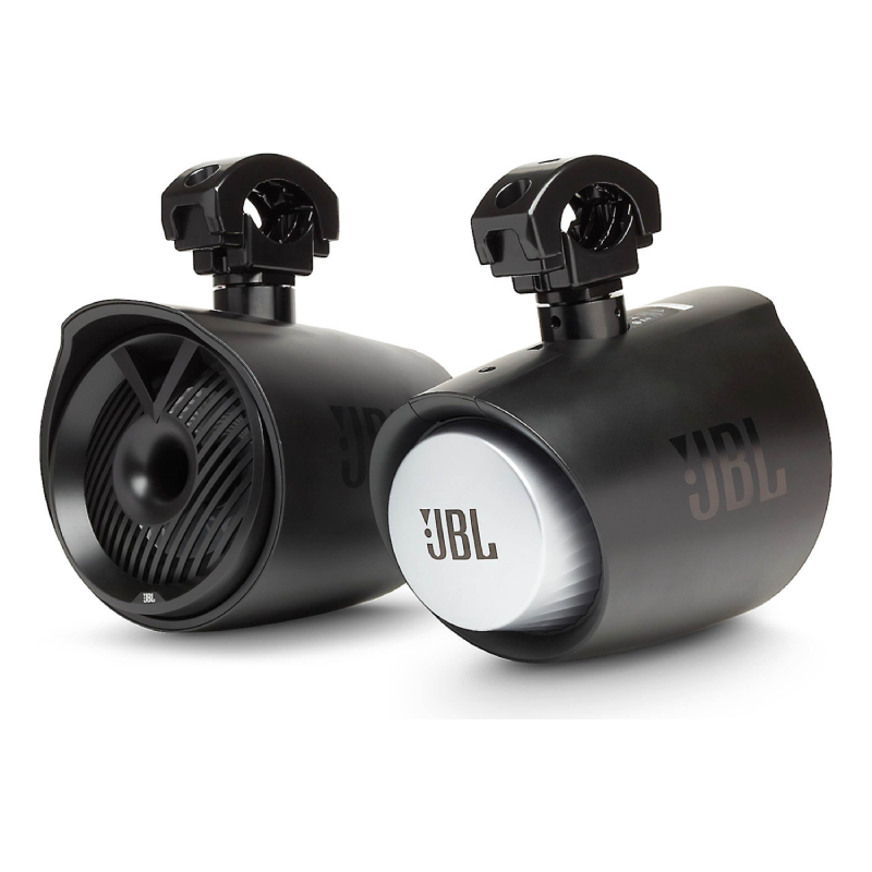 JBL Tower X Marine Speakers feature a rugged 360-degree rotating bracket design adjustable to 1.75in. to 3in. bar sizes. An added bonus is the ability to thread your wiring directly from the bar through the bottom bracket and into the speaker enclosure to limit exposed wiring and allow for a clean install.