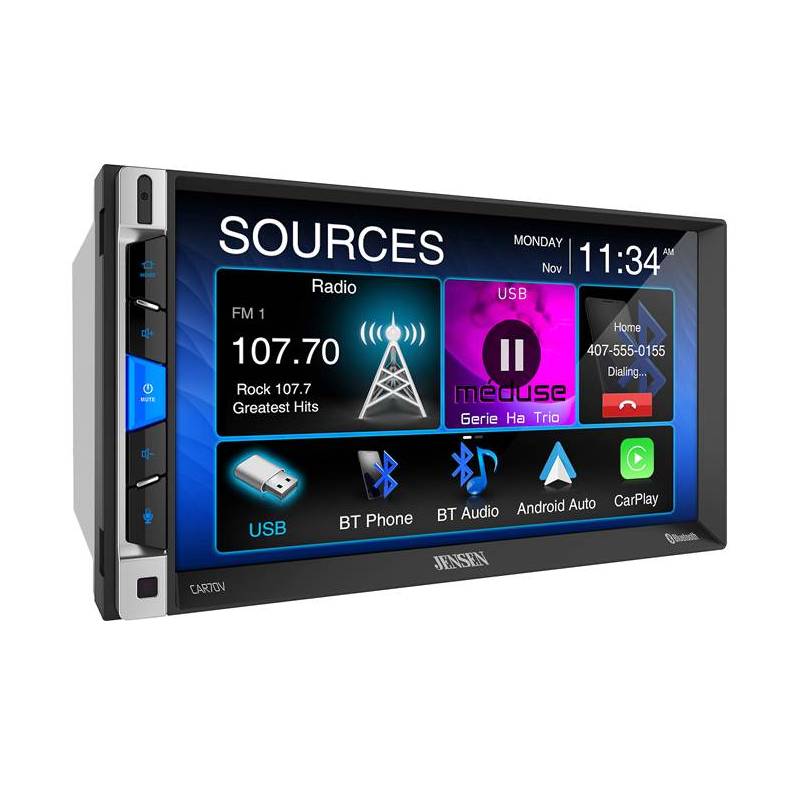 You can use the 7" touchscreen display for system control, media info, and as a monitor for a connected backup camera (not included, see Accessories), great for backing into those tight parking spots. The USB port lets you connect and charge a smartphone. Jensen also builds in three sets of preamp outputs for amplifiers powering your speakers and subs, and the 8-band equalizer gives you nice options for tweaking the sound in your vehicle.