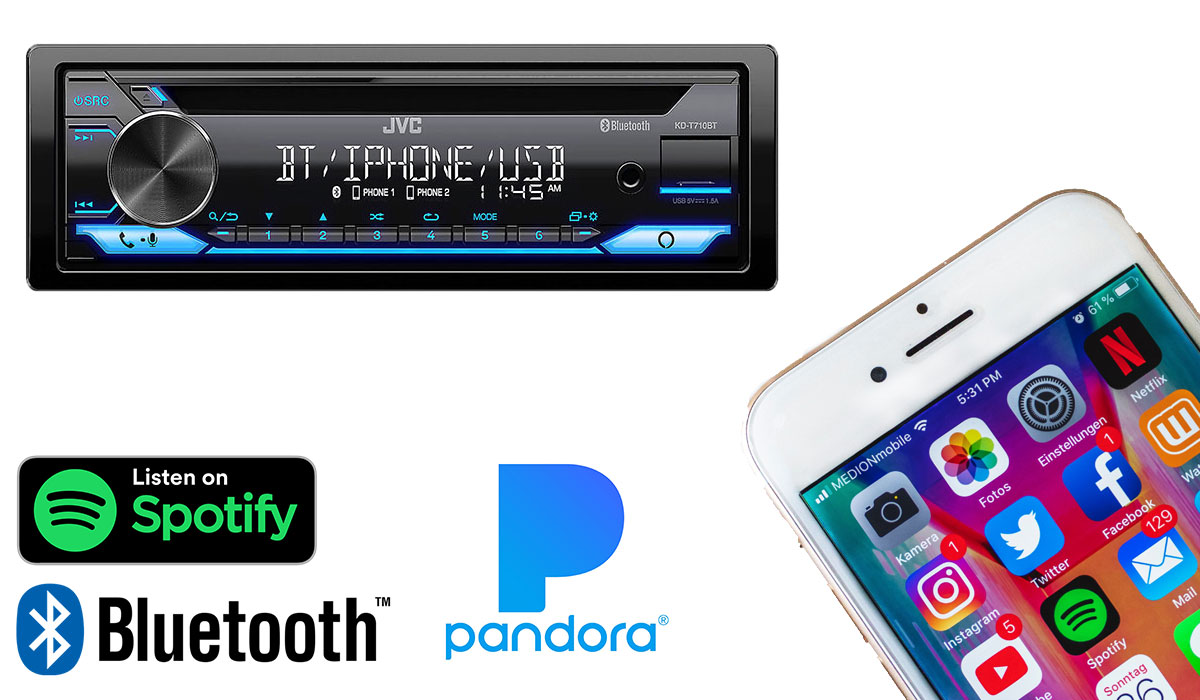 JVC KD-T710BT CD Receiver featuring Bluetooth, USB, Amazon Alexa, 13-Band EQ, JVC Remote App Compatibility