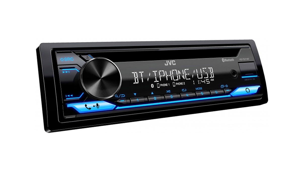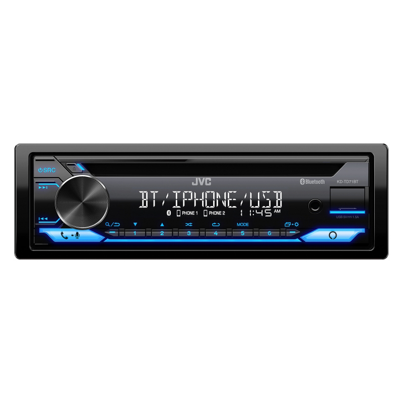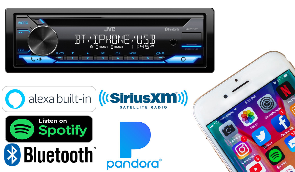 JVC KD-TD71BT 1-DIN CD Receiver featuring Bluetooth, USB, Amazon Alexa, 13-Band EQ, JVC Remote App Compatibility