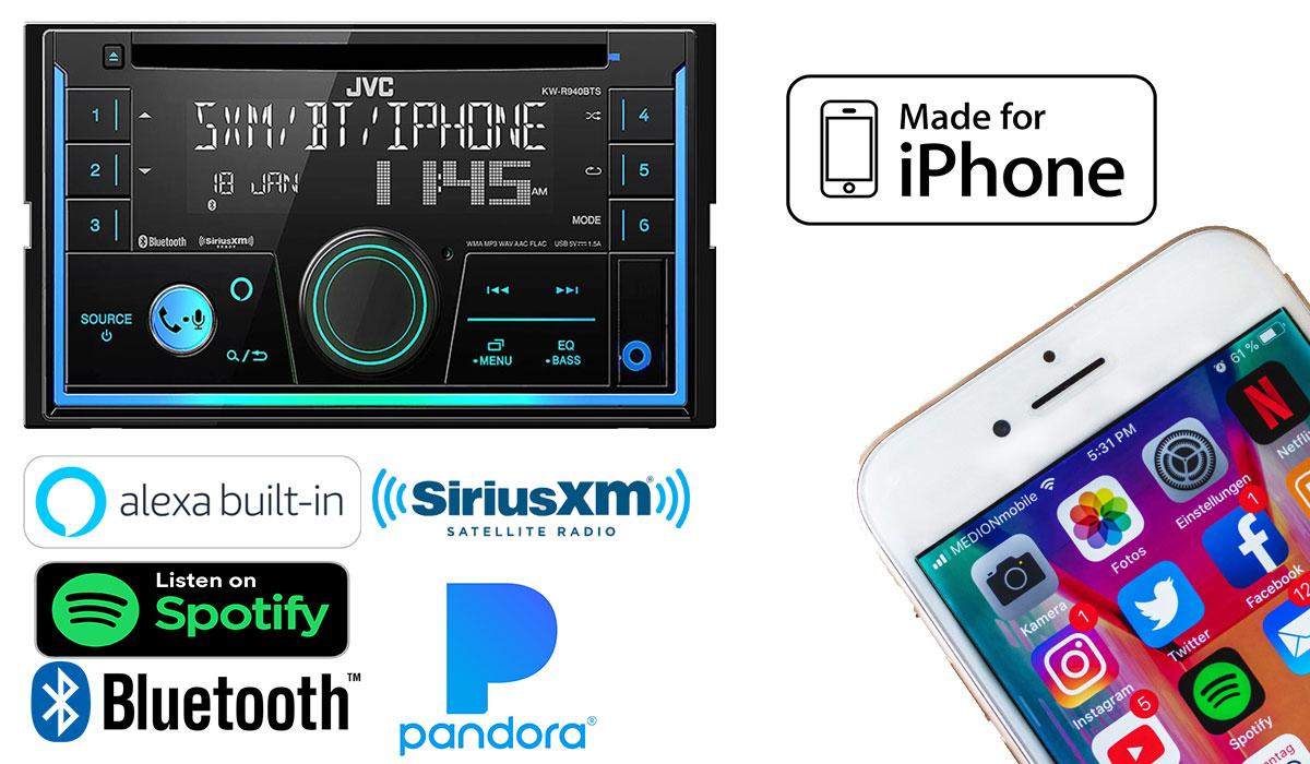 JVC KW-R940BTS 2-Din, CD Receiver featuring Bluetooth, USB, SiriusXM, Amazon Alexa, 13-Band EQ, JVC Remote App Compatibility