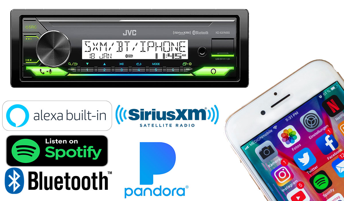 JVC KD-X37MBS Digital Media Receiver featuring Bluetooth, USB, SiriusXM, Amazon Alexa, Backlit Display, Conformal Coated PCB, 13-Band EQ, JVC Remote App Compatibility