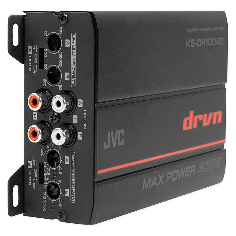 JVC's compact drvn Series KS-DR1004D amplifier will add new clarity and impact to the basic sound system in almost any kind of vehicle on land or water, and it'll fit in a lot of places where space is tight.