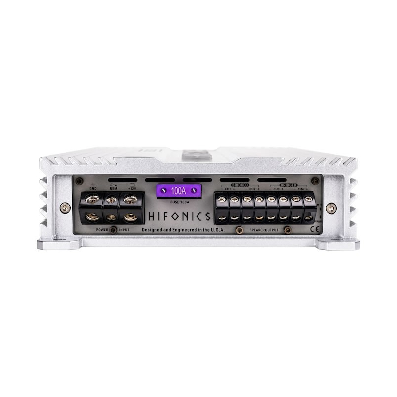 The Hifonics BG-1600.4 has a low-noise preamplifier circuit and an Ultra-Fi MOSFET output device technology. Its aluminum heatsink helps the amplifier to stay cool even after long hours of use. It also has illuminated indicators on the amplifier to monitor speaker short and overload issues.