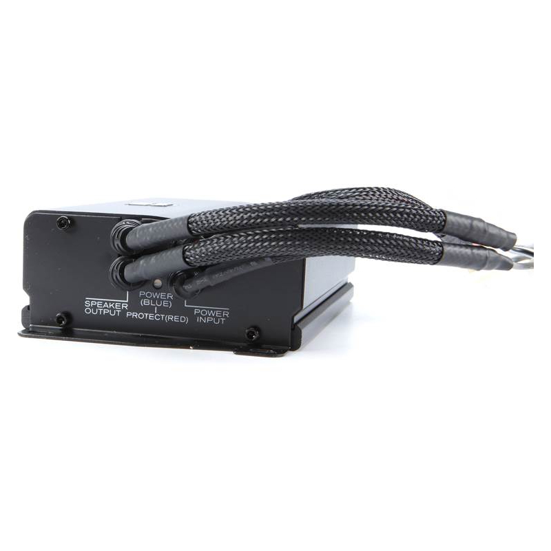 - • 2-Channel amplifier w/ attached 8" power/ground and speaker output harnesses (terminated with Molex plugs)