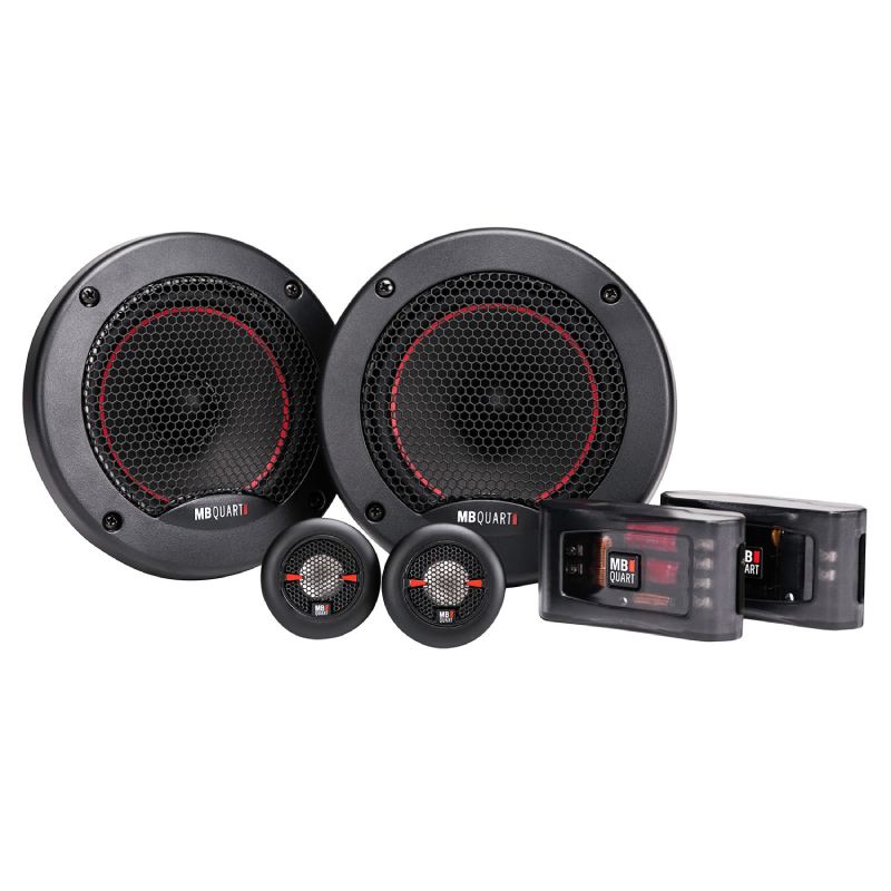 MB Quart's rich history as a German audio pioneer shines through with their Reference Series car speakers. The MB Quart RS1-213 5-1/4" component system features two quality woofers, two 3/4" tweeters, and two external crossovers. An extremely lightweight pulp/bamboo hybrid woofer cone delivers the lower and midrange frequencies with accuracy. MB Quart complements that natural, rich sound with precise high notes from the 3/4" titanium dome tweeters. Additionally, WideSphere™ technology expands the tweeter's dispersion pattern for a wider, more lively soundstage.