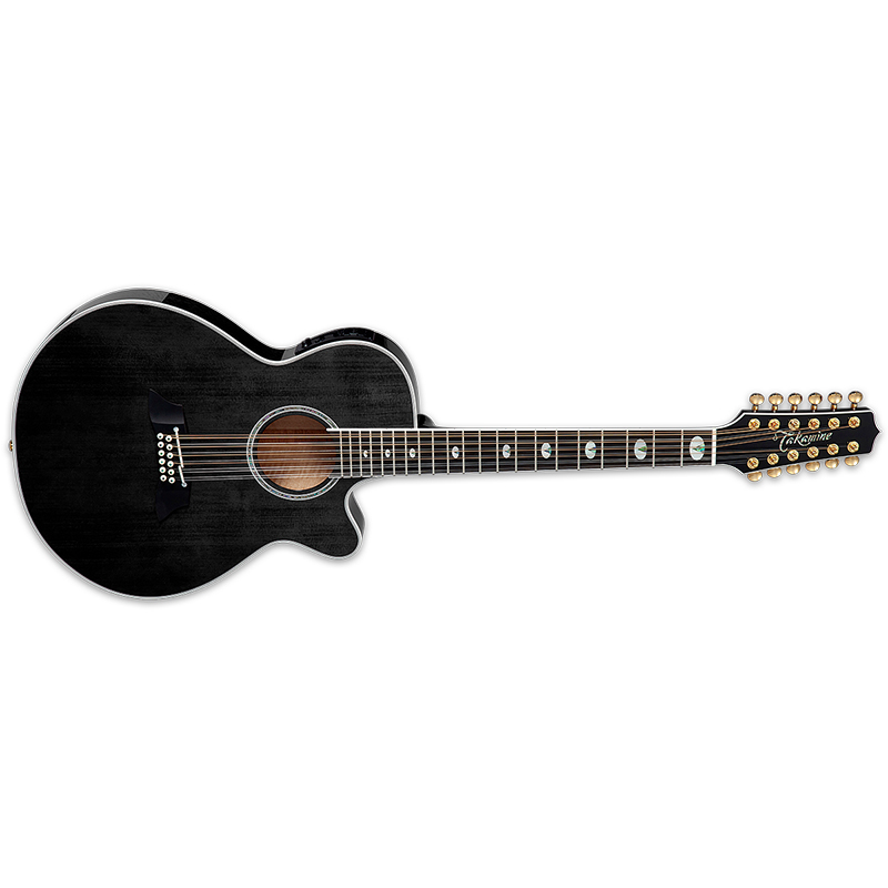 This Thinline Series guitar has a large acoustic sound that is chimey and articulate due to its arched maple back and sides. Designed for comfort and ease on stage, it comes equipped with Takamine's CT3N electronics, providing effortless stage amplification and controls — a hallmark of all Takamine guitars. Presented in See Thru Black gloss finish, this is the 12-string companion in a set of matched 6 and 12 string Thinline Series models.