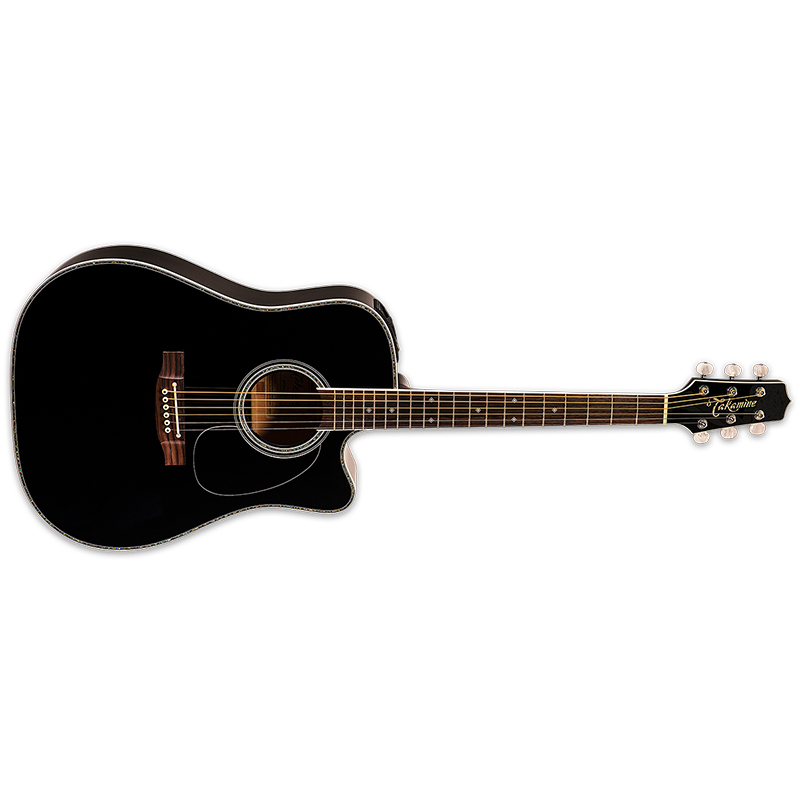 Takamine Guitars Deluxe Series Dreadnought With Cutaway, Solid Cedar Top, Abalone Purfling, Maple Back And Sides, Gloss Black Finish, Pearloid Tuning Machines, Ct4b-ii Electronics W/case