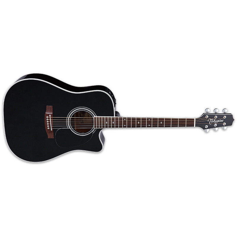 Takamine Guitars Legacy Series Dreadnought With Cutaway, Solid Cedar Top, Maple Back And Sides, Gloss Black Finish, Ct4b II Electronics W/case