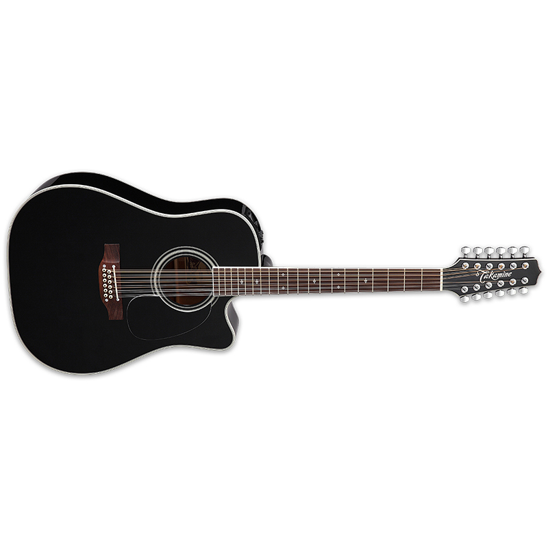 Takamine Guitars Legacy Series 12-string Dreadnought With Cutaway, Solid Spruce Top, Maple Back And Sides, Gloss Black Finish, CT4BII Electronics W/case