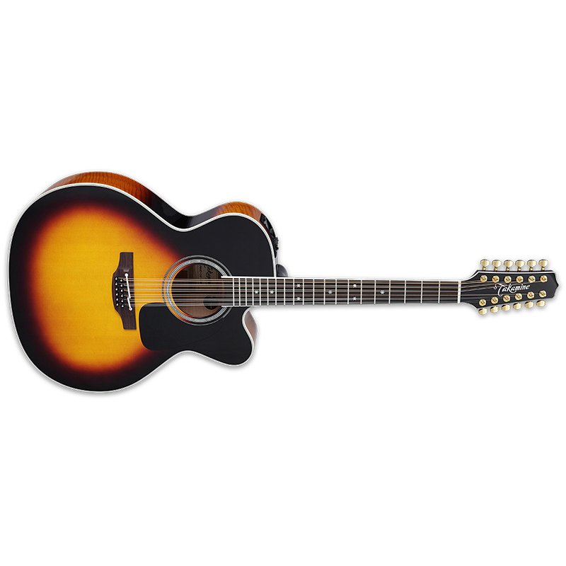 Takamine Guitars Pro Series 6 12-string Jumbo With Venetian Cutaway, Solid Spruce Top, Flamed Maple Back (Solid) And Sides, Brown Sunburst Gloss Finish, CTP-3 Cool Tube Electronics, Gold Hardware W/case