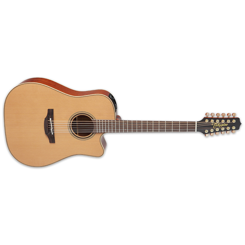 Takamine Guitars Pro Series 3 12-string Dreadnought With Venetian Cutaway, Satin Solid Cedar Top, Satin Sapele Back (Solid) And Sides, CT4BII Electronics, Gold Hardware W/case