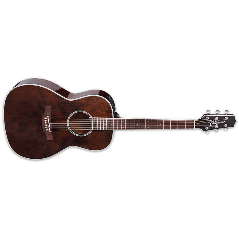 This fun New Yorker-sized guitar is a great guitar for recording, acoustic blues, Americana, or fingerstyle. Essentially a retro take on Takamine's venerable P3NY, these guitars have fun finishes, non-slotted headstocks, intricate diamond inlays, and cool small button chrome tuners. They are great songwriting machines as the smaller size invites you to curl up on the couch with them. The bonus is that it will step up on stage with you easily—utilizing Takamine's legendary CT4B II electronics and Palathetic pickup.