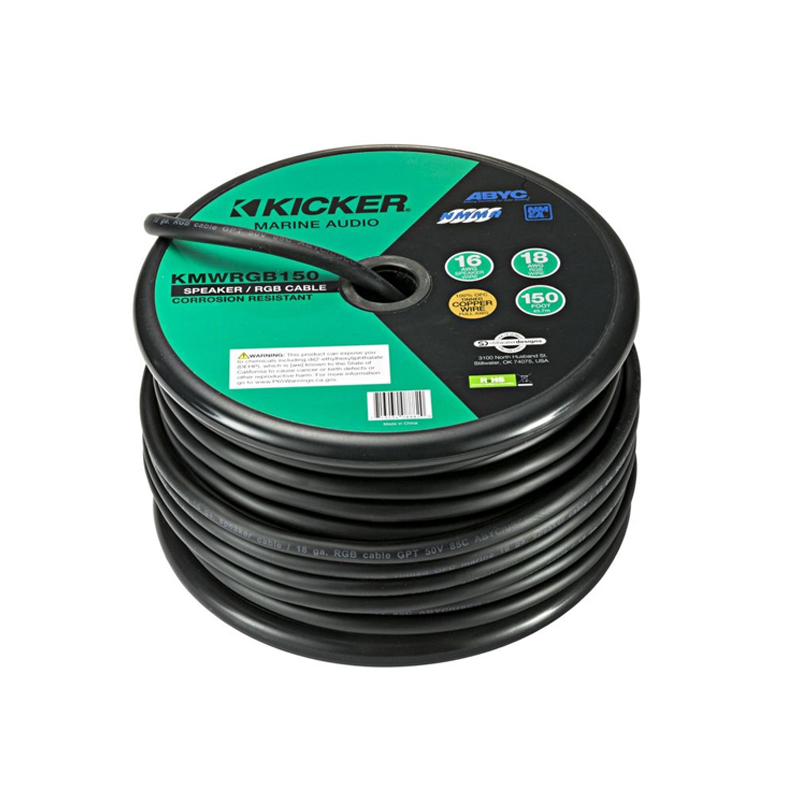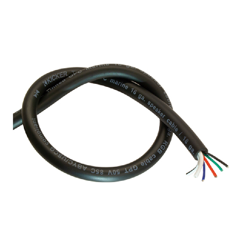Marine-grade protection and power! KICKER KMWRGB wire meets the highest marine standards for safety and durability. The wire includes individual high-quality OFC cables for your speaker and LEDs inside a thick, weatherproof PVC jacketing.