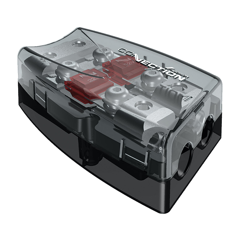 Audison Connection 1/0 & 4 AWG input, Two 4 AWG output, 2 positions, 8 AWG Adapter 2-way AFS Fused Distribution