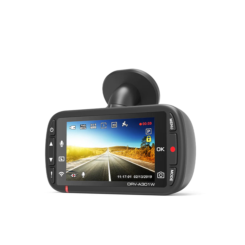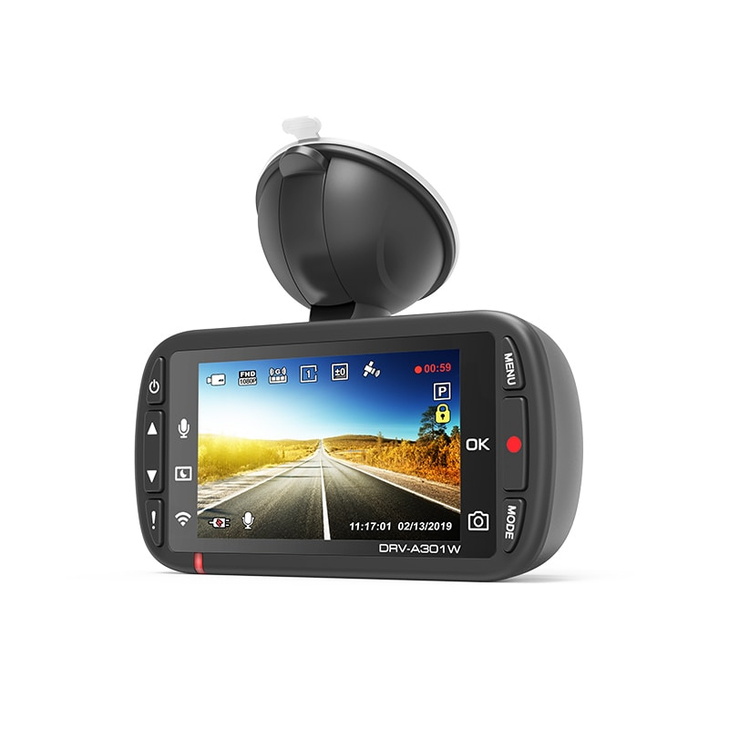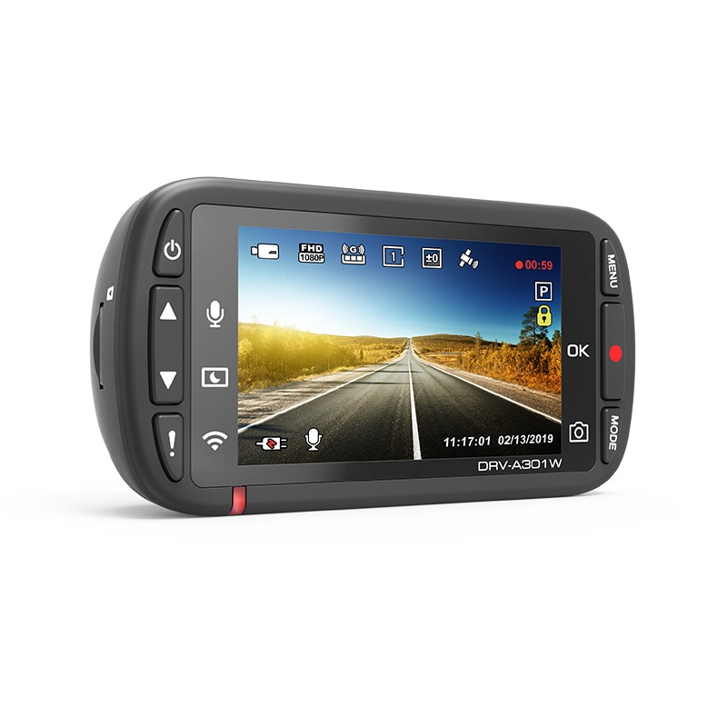 The DRV-A301W is equipped with a G-Sensor designed to detect a collision, and GPS that records speed, latitude, and longitude.