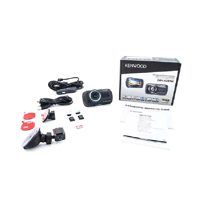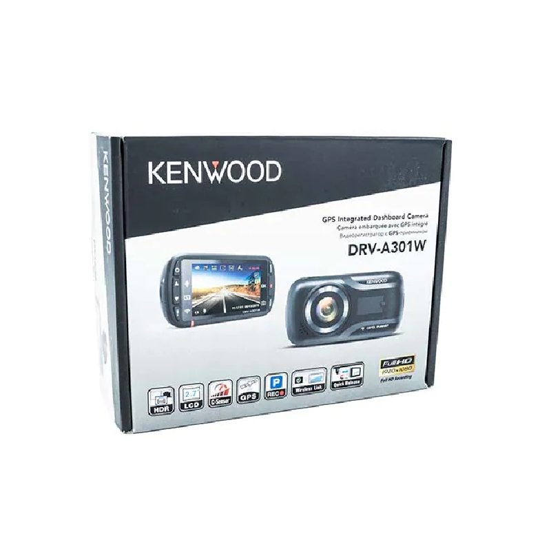 Kenwood DRV-A301W Full HD Recording 1920 x 1080, 2.7"LCD, Built-in Wi-Fi, G-Sensor, HDR, GPS, 16GB micro SD, 12V Cigarette Plug, Suction cup & 3M installation bracket included