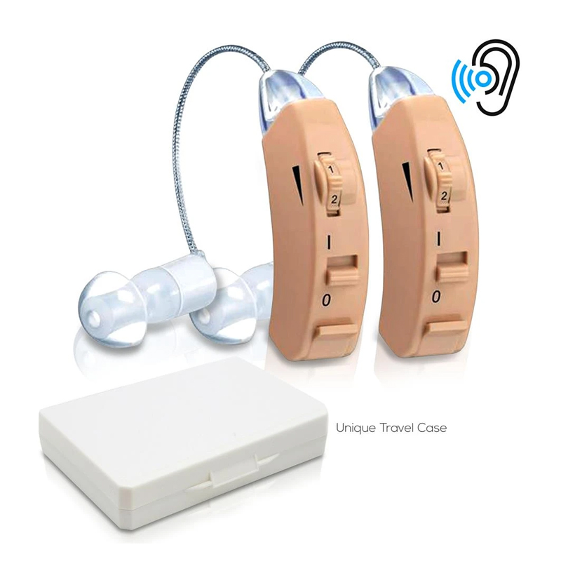 Dual Hearing Amplifiers, (2) Behind-the-Ear (BTE) Audio Assistance Enhancers, Volume Adjustable