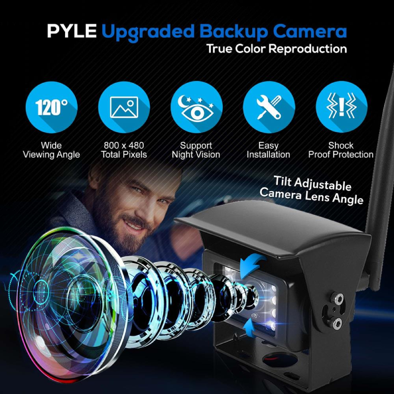 • 7” LCD SCREEN: The Pyle vehicle video monitor system comes with a slim 7" LCD display w/ 800x480 video resolution, built-in 2.4Ghz wireless video receiver and NTSC/PAL video system, and quad view display ability so you can monitor all 4 cams at once