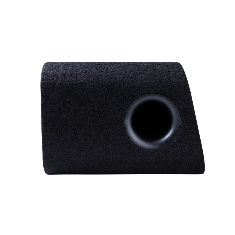 The enclosure is made of high-quality medium-density fiberboard, which is a pretty standard material for this category, and is wrapped with a thick carpet to protect it from scratches. Its front panel has a piano black gloss finish, and it comes with a vented/ported design, allowing the subwoofers to deliver a louder and better sound.