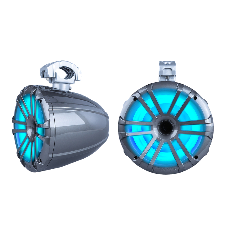 Our ez-swivel mounting system makes adjusting the speakers simple allowing for 360° swivel action. This monster 8" towers ship with color changing RGB LED light rings built into them so you can keep the party going all light. Bolt these towers to a ski rack or side by side and be the envy of the cove or the trails with massive Memphis sound. The MXA82TG is sold in pairs and sports a durable gunmetal finish.