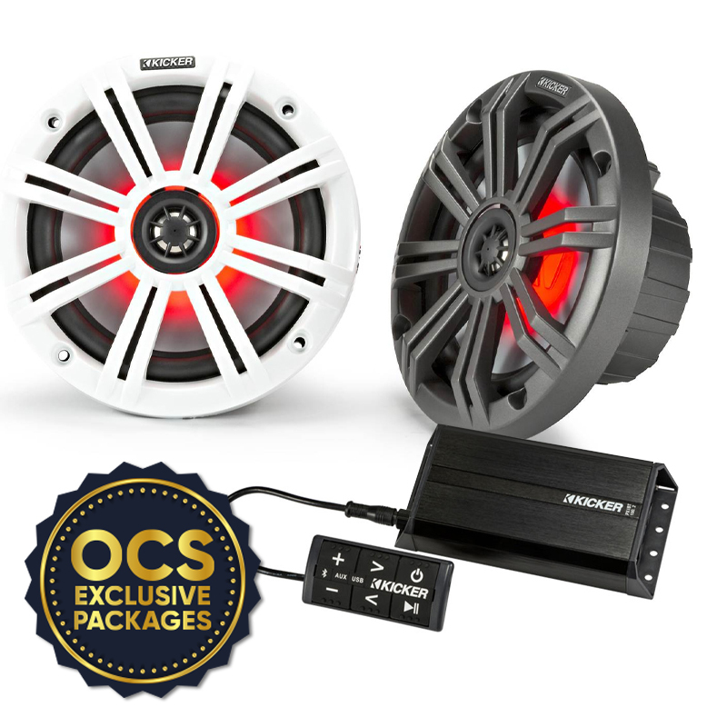 Your cruise needs a soundtrack. KICKER KM Coaxial Marine Speakers make it loud, clear and fun! In addition to a trio of sizes and available LED lighting, every KM coax comes with both charcoal and white grilles, so you can match the theme of your audio to the theme of your boat with ease. The KICKER logo means it sounds great and will last for years. Whether your boat is in salt or fresh water, we know you need spectacular highs and lows to get that quality, full-range audio designed specifically for a marine environment.