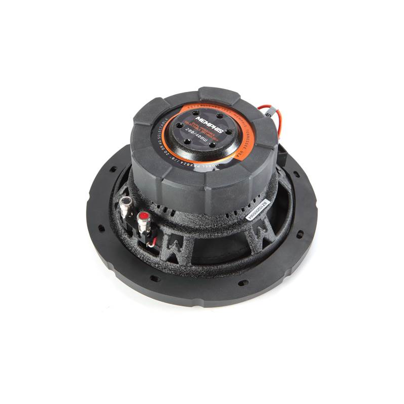 The Memphis Audio PRX824 subwoofer is a powerful and versatile audio component that delivers exceptional bass performance in-car audio systems. With its robust construction and advanced engineering, this subwoofer offers an immersive listening experience with deep, accurate, and impactful bass. Featuring an 8-inch dual voice coil design, the PRX824 can easily handle high power levels. Its rigid cone and surround materials ensure durability and minimize distortion, resulting in clean and precise bass reproduction. The subwoofer boasts a high-temperature voice coil that can handle demanding audio signals without overheating.