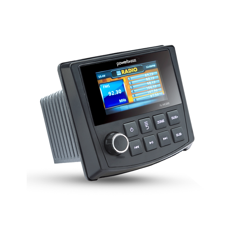 Built to Marine Grade specs the sealed face panel and 3” color TFT screen give you a flowing menu page that easily allows you to control not only your music but also the sound with preset equalization, High Pass & Low Pass Crossover, tone control, and 3-Zone output with independent volume control. Power your XL-POD’s or other speakers with the built in Class D Amplifier providing 50W x 4 RMS and 100W x 4 MAX output to keep the tunes rocking! Backing your UTV up is made even easier with the MC-200’s video input for use with most any back up camera systems. With PowerBass Extreme Marine and Powersports products the sound track for your adventures comes alive!