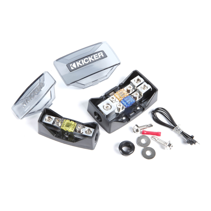 KICKER® complete amp kits feature top-quality Hyper-Flex power, ground and turn-on cables. K Series speaker wire and interconnects are also included, as is a heavy-duty AFS fuse holder and fusing. Insulated crimp connectors and zip ties come in the kit as well.