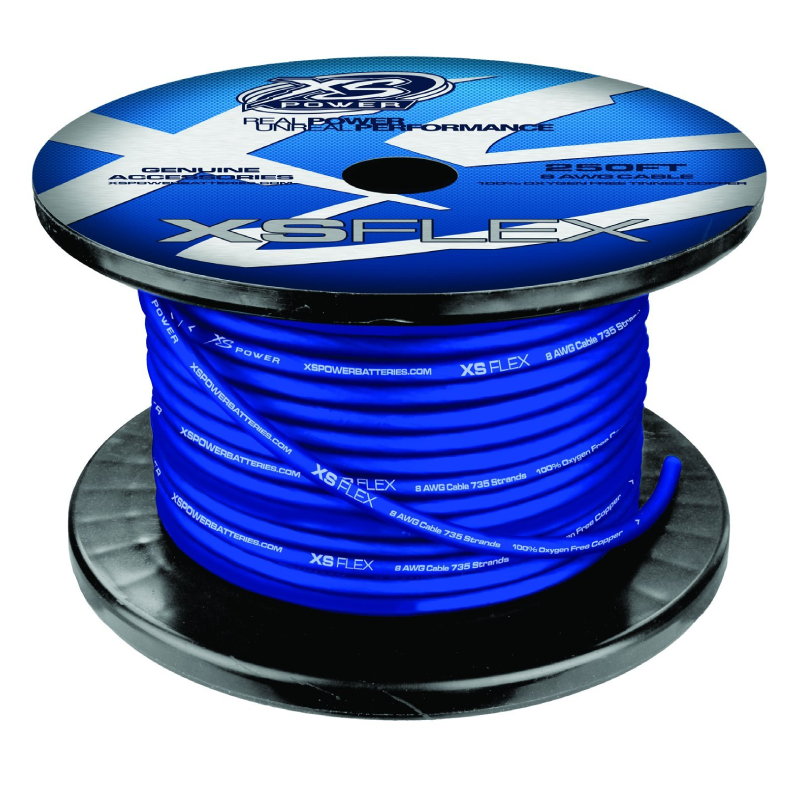 XS Power XSFLEX8BL-250 8 AWG Cable, 100% Oxygen Free Tinned Copper, Iced Blue, 250' Spool