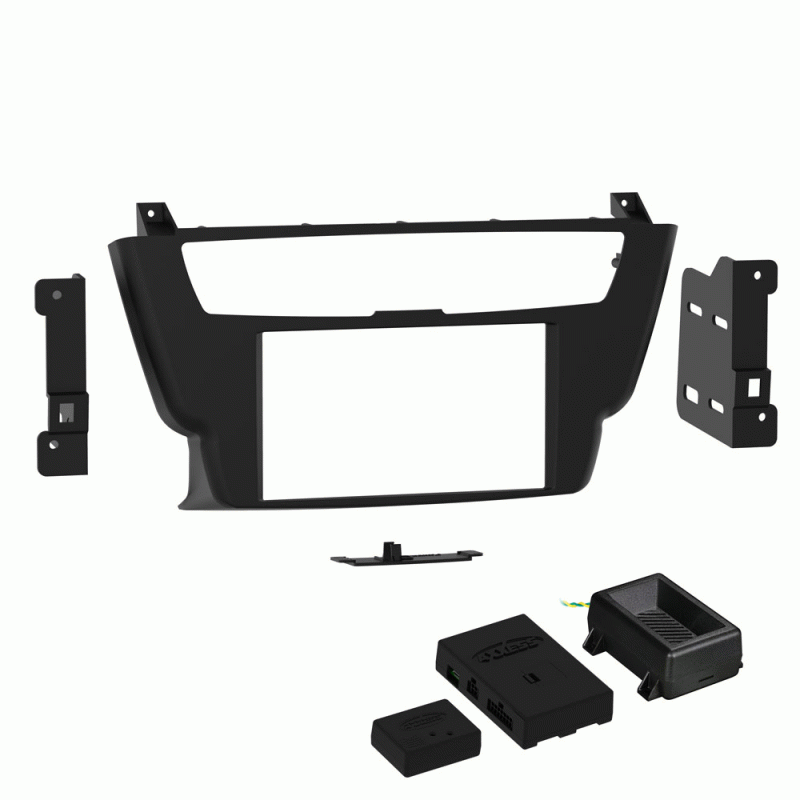 ISO DDIN radio provision, Retains the factory climate controls, Retains the factory ambient ashtray light (if equipped), Does not retain factory camera, Includes all necessary data interfaces, wiring harnesses, and antenna adapter, for a complete installation, Painted black to match the factory dash.