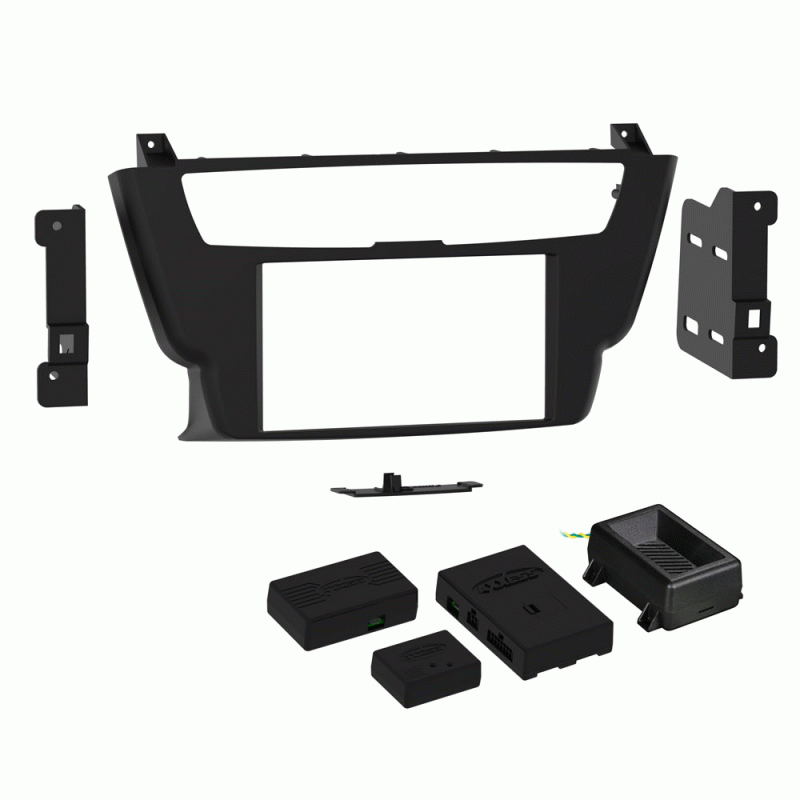 ISO DDIN radio provision, Retains the factory climate controls, Retains the factory ambient ashtray light (if equipped), Does not retain factory camera, Includes all necessary data interfaces, wiring harnesses, and antenna adapter, for a complete installation, and Painted black to match the factory dash.