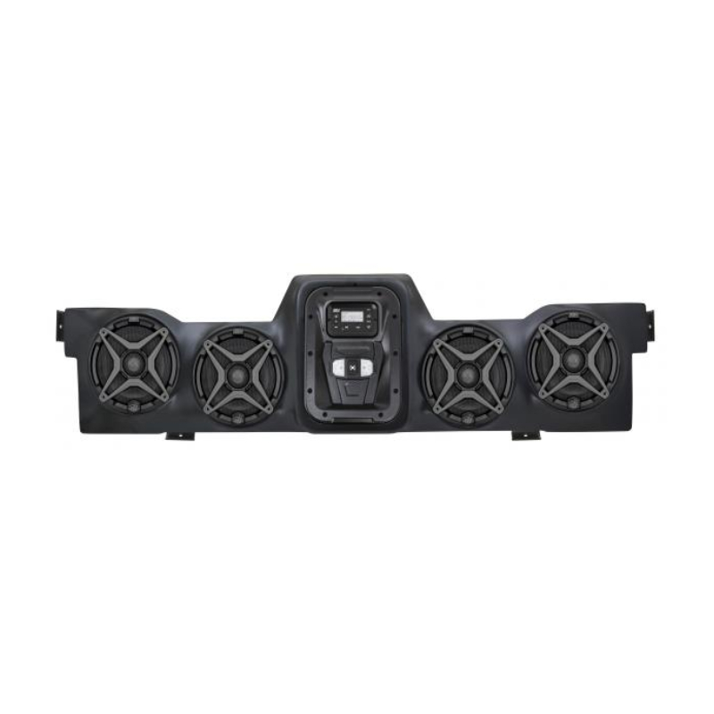 The WP-CMO4 provides Hi-Def stereo sound and mounts overhead to your stock cage; Installs in 15 minutes with a simple 2 wire hook up and is totally weather proof. No more radios...Simply connect your Smartphone or MP3 player wirelessly via Bluetooth. System features a built-in 50 watt x4 ultra-efficient low power consumption digital amp designed around UTV's charging system, waterproof speakers, includes AM/FM tuner for local radio reception with internal antenna. Like all SSV Works systems, the enclosure is constructed of fiberglass for maximum durability and the best sound quality. All systems include wiring, mounting hardware and step-by-step instructions. - Optional RCA low-level output for system expansion (requires WP-HRCA adapter)