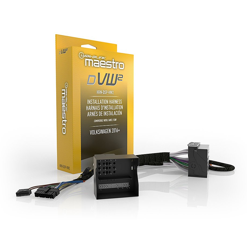 This iDatalink HRN-DSP-VW2 harness connects a Rockford Fosgate DSR1 digital signal processor (sold separately) to your Volkswagen vehicle with no factory amp, so you can add digital signal processing as well as an aftermarket amp without losing important features and functions. This T-harness connects to the factory radio's harness, supplying audio and databus signals to the DSR1's Maestro interface without any wire splicing.