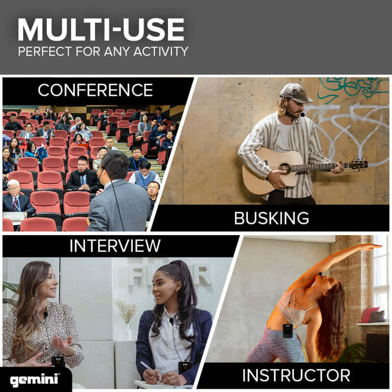 Karaoke, Busking, Weddings, Conferences, Podcasting, etc, the list goes on. The GMU Wireless series will perform well in many applications and scenarios. Whether in a professional environment or at home, the GMU Series offers the perfect solution for your wireless audio needs!