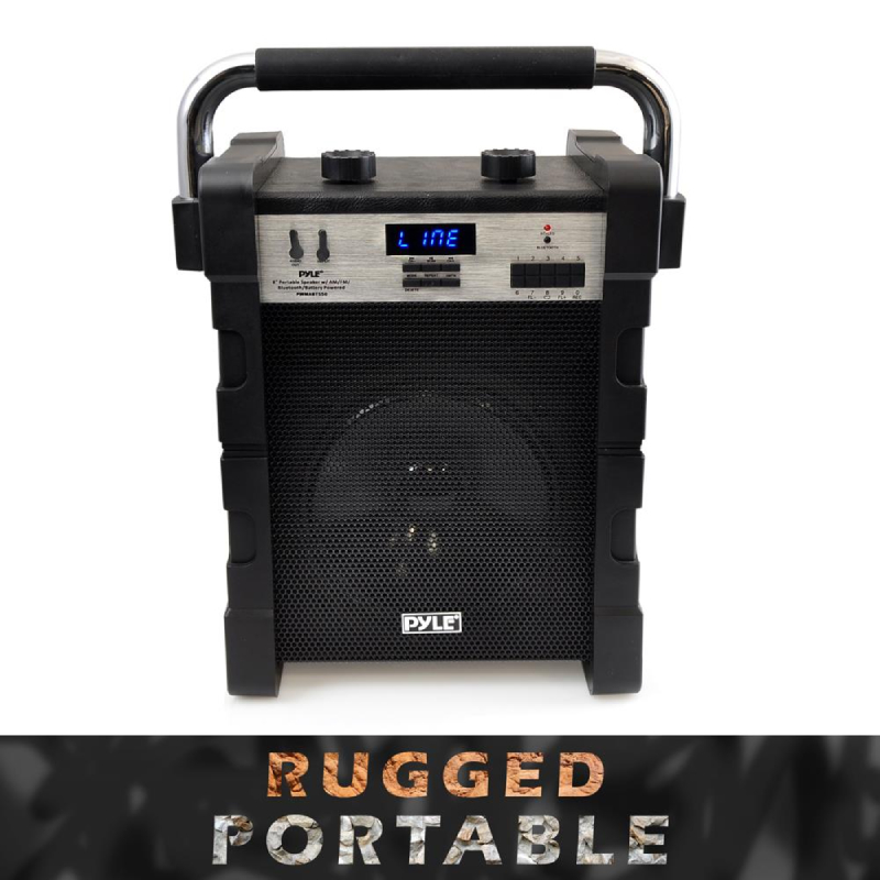 Bluetooth Wireless Rugged & Portable Speaker System, Work / Job Site Stereo, Built-in Rechargeable Battery, MP3/USB/SD, AM/FM Radio (Black)